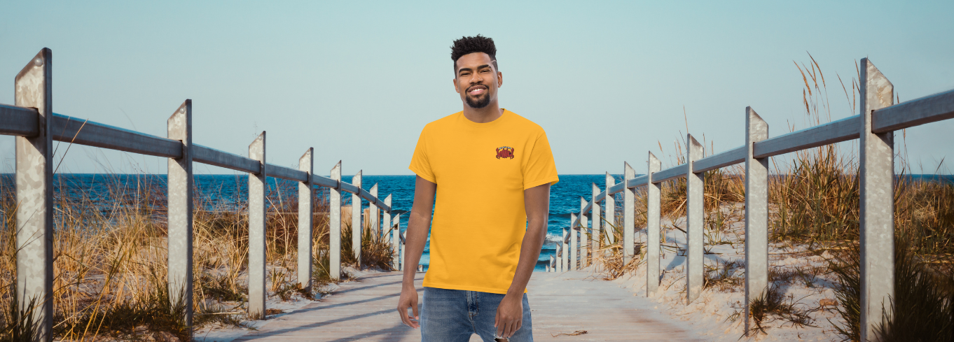Trust me when I say I made a good decision buying the men with crab tees. Plus, it's made of 100% cotton, so the fabric feels nice and sturdy. I highly recommend you get one too!